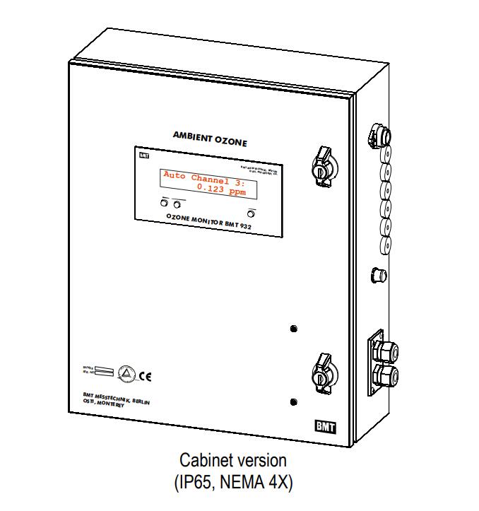 描述:壁掛式金屬柜中的低濃度臭氧監(jiān)測儀,防濺,1、3或6通道,規(guī)格與BMT 932相同