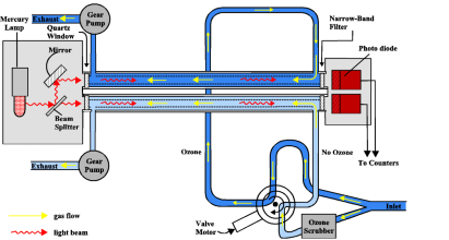 意大利ETG公司的EDK7100P型臭氧分析儀,基于紫外光源的朗伯比爾 Beer-Lambert定律,當(dāng)254nm紫外光通過臭氧氣體樣品腔室時(shí)被臭氧吸收,吸收值與臭氧濃度遵循朗伯比爾定律,通過測量吸收前和吸收后的紫外光信號的變化值,與參考光源進(jìn)行比對計(jì)算,并分析出被測臭氧的濃度值。